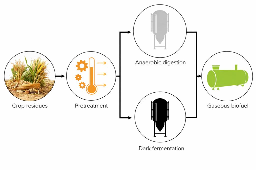 Gaseous biofuels such as biogas, biomethane, syngas, and compressed biogas (CBG) are renewable energy sources generated through biological and thermochemical processes. They are widely used for power generation, industrial heating, and transportation, offering a lower carbon footprint compared to conventional fossil fuels. Gaseous biofuels also support effective waste management and contribute to cleaner, sustainable energy systems.